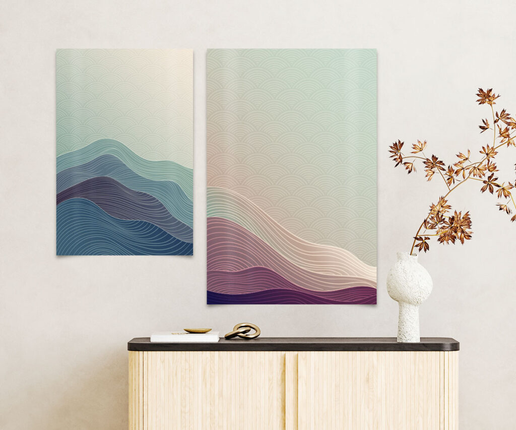 Abordable – les affiches sont probablement l’un des formats d’art mural les plus abordables. Vous pouvez imprimer autant d’affiches que vous le souhaitez sans dépasser le budget. De plus, les affiches ne nécessitent même pas de systèmes de suspension spéciaux, vous n’aurez donc pas besoin de dépenser du temps et de l’argent pour des clous et des vis – le ruban adhésif double-face le plus basique suffira.