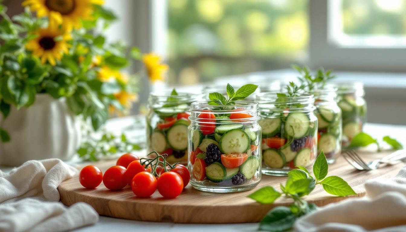 Pour une présentation séduisante, pensez à superposer les ingrédients en couches visibles et à ajouter des garnitures colorées. Un filet d’huile d’olive et quelques herbes fraîches peuvent aussi embellir les verrines.