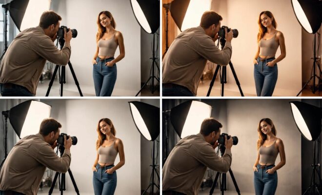 L’éclairage est l’un des aspects les plus déterminants de la photographie en studio. Plusieurs configurations d’éclairage peuvent être appliquées selon le sujet et l’ambiance recherchée. Par exemple, l’éclairage à éclairage frontal produit un effet de lumière douce et uniforme, idéal pour les portraits, tandis qu’un éclairage latéral ou à contre-jour peut créer des ombres dramatiques et ajouter de la profondeur.